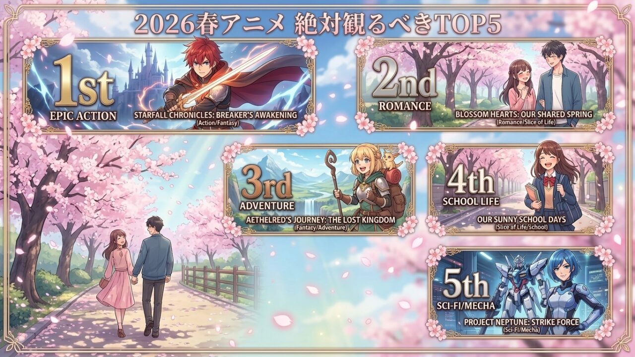 この記事では、2026年春アニメのおすすめ作品を5つに厳選し、ランキング形式で紹介します。さらに、どうしても触れておきたい夏アニメ1作品を番外編として取り上げました。